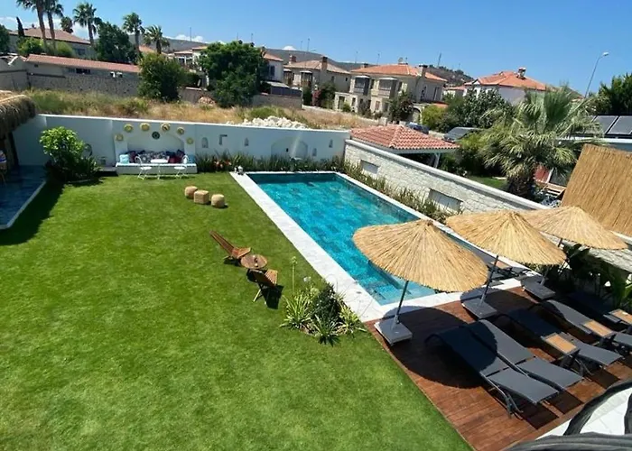 Minos Alacati Hotel Çeşme met 9 kamers, dat op 5 minuten loopafstand van Zeytin Konak Otel ligt, biedt toegang tot bezienswaardigheden van Çeşme.